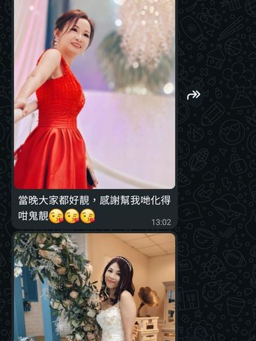 以上包化妝set頭* 如需補妝, 另加$1400(6人), 化妝師在下午4-5時在酒樓準備, 完成後離去.