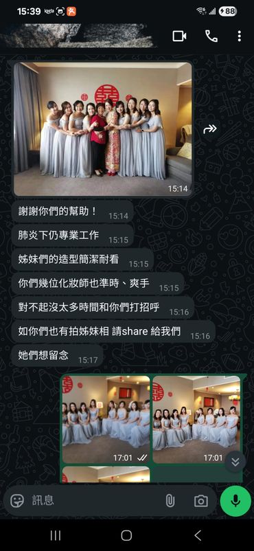 由於工作關係, 化妝師有時會在海外, 因此未必能接聽到電話, 大家可以e-mail和whatapp聯絡, 如需報價, 請盡量提供以下資料: 1) 姊妹人數: 2) 婚禮日期: 3) 地點: (早上化妝地點, 如要補妝請提供酒樓地點) 4) 接新娘時間: (如已知道, 請盡量提供) 5) Bridesmaid Package